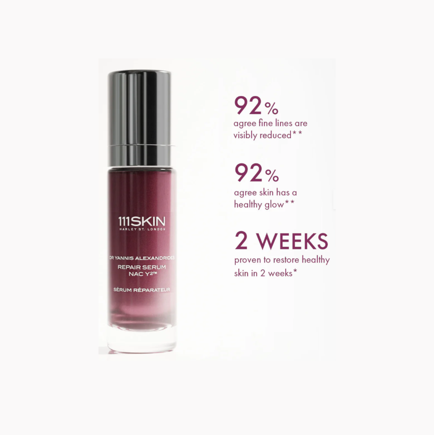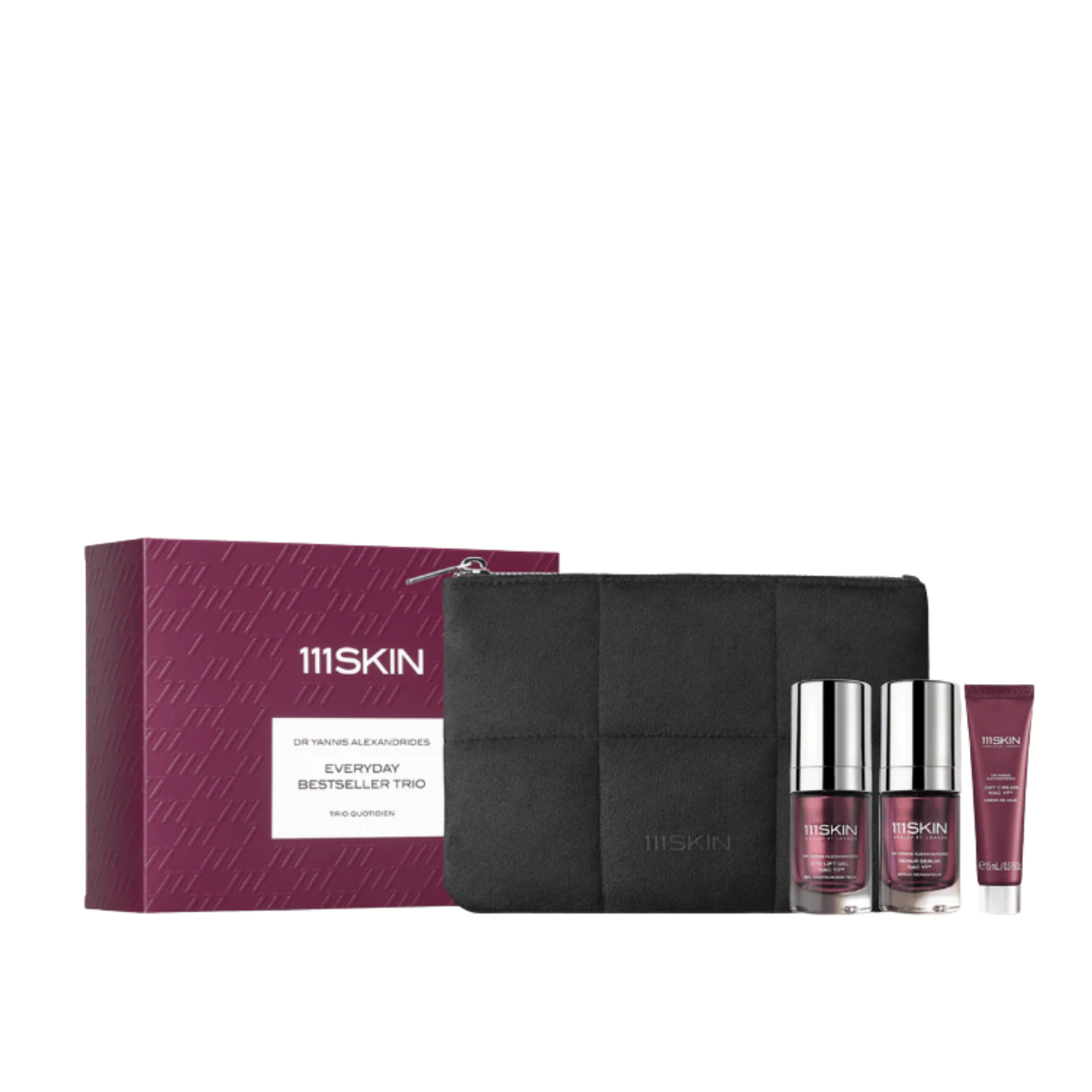 Descubre tu rutina reparadora 111SKIN con este trío de nuestras fórmulas heroicas. Repair Serum NAC Y2™ está clínicamente demostrado para restaurar la piel sana, reforzar la barrera cutánea e hidratar al instante. El gel Eye Lift NAC Y2™, conocido como 'lifting de ojos en botella', se centra en la zona delicada de los ojos para hidratar y desinflar, logrando una apariencia más joven y despierta. Por último, la Crema de Reparación de Día NAC Y2™ ayuda a proteger la piel y fortalecer la barrera, todo ello mientras se integra sin esfuerzo en la piel. Este trío potente viene en una preciosa bolsa de terciopelo para llevar contigo a todas partes.