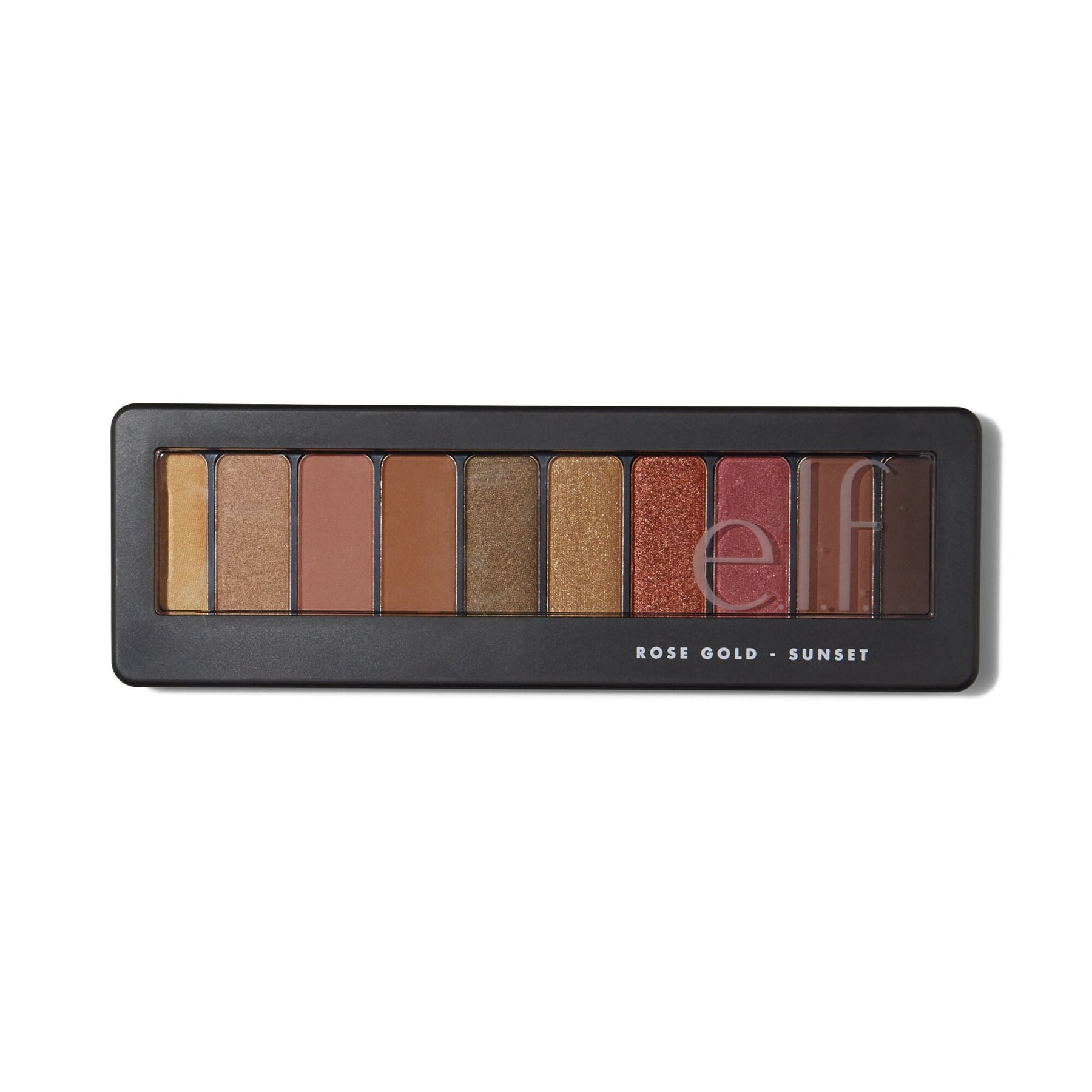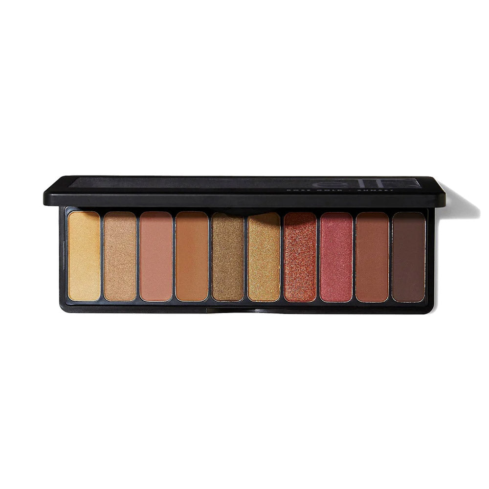 Paleta de 10 colores de sombras oro rosa, tonos de atardecer cálidos y profundos