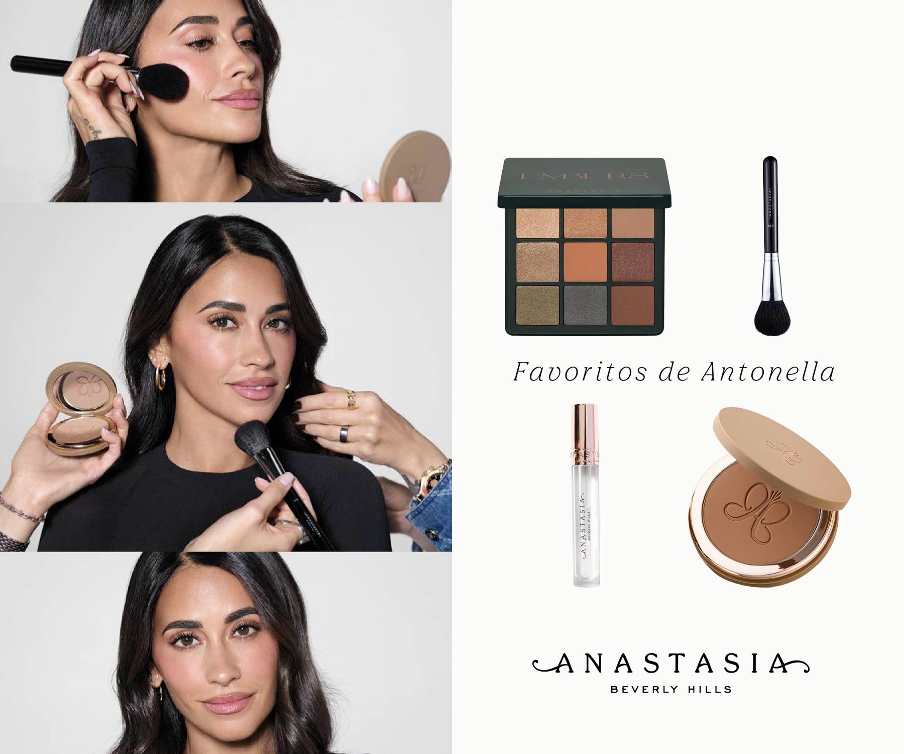 Descubre Favoritos de Antonela Rocuzzo, un kit exclusivo de ABH diseñado para crear un look completo con los esenciales de maquillaje. Este set incluye la Embers Mini Eyeshadow Palette, el Crystal Gloss, la brocha A19 Pro Brush Blush y el Smooth Blur Bronzer, una combinación perfecta para lograr un maquillaje cálido, luminoso y profesional.