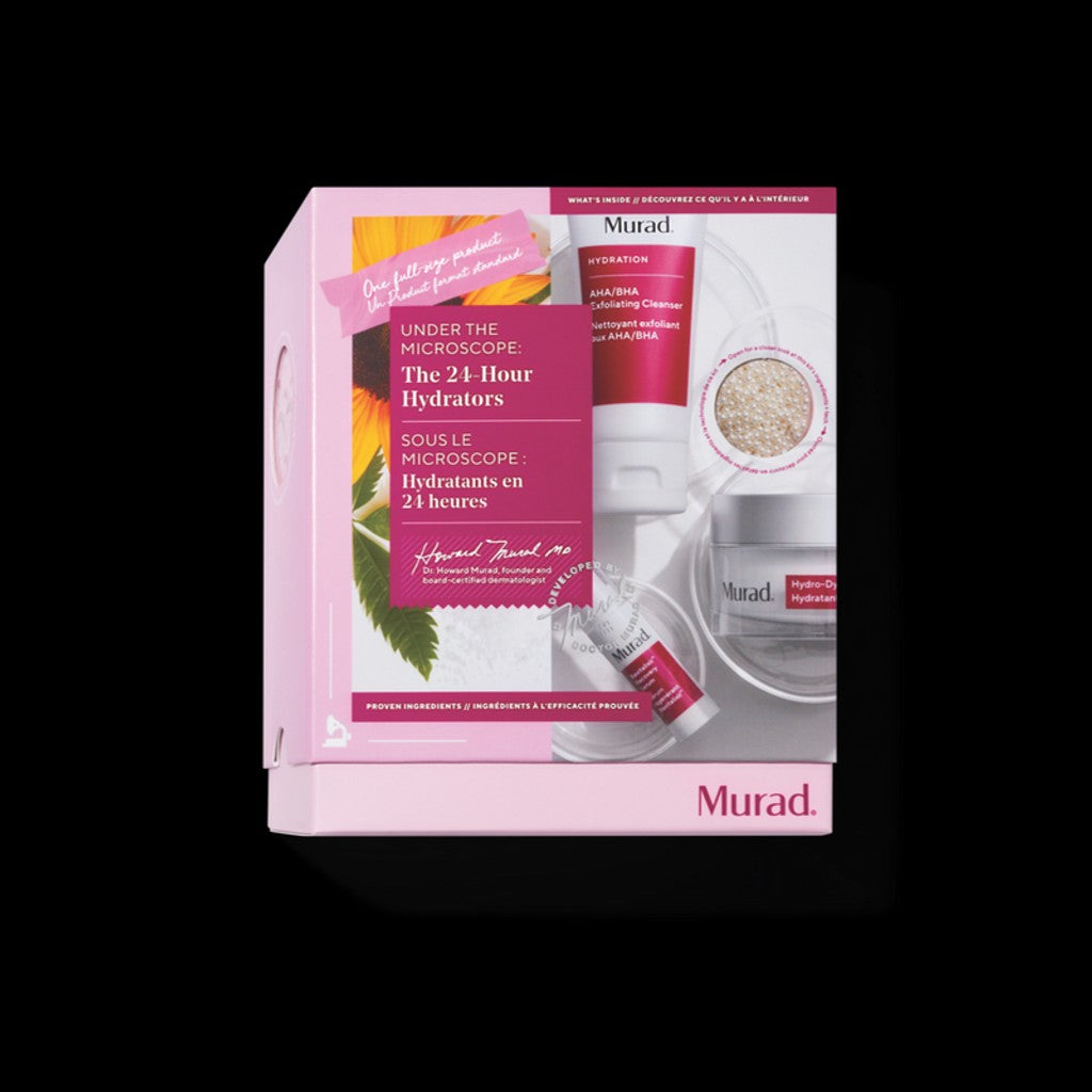 Para usar: Mañana y noche después de la limpieza, masajee el suero de recuperación Revitalixir sobre la cara, el cuello y el pecho, y dé palmaditas suavemente alrededor del área de los ojos. Masajea Hydro-Dynamic Ultimate Moisture en la cara, el cuello y el pecho. Usa un protector solar Murad durante el día