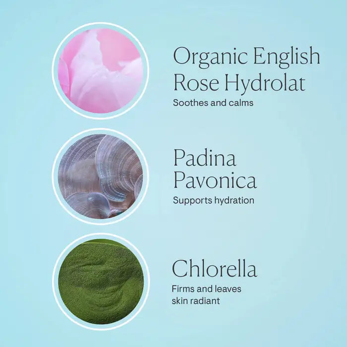 Formulado con poderosos activos marinos y vegetales, incluidas nuestras algas superheropina Pavonica, Chlorella y Ginkgo Biloba que aumentan la humedad, para mejorar la firmeza y proporcionar una hidratación instantánea. Sumérjase en el tranquilo aromático del jardín de rosas, infundido con más de 20 variedades de rosa inglesa, cuidadosamente seleccionada por su compleja fragancia y cualidades calmantes para la mente y la piel.