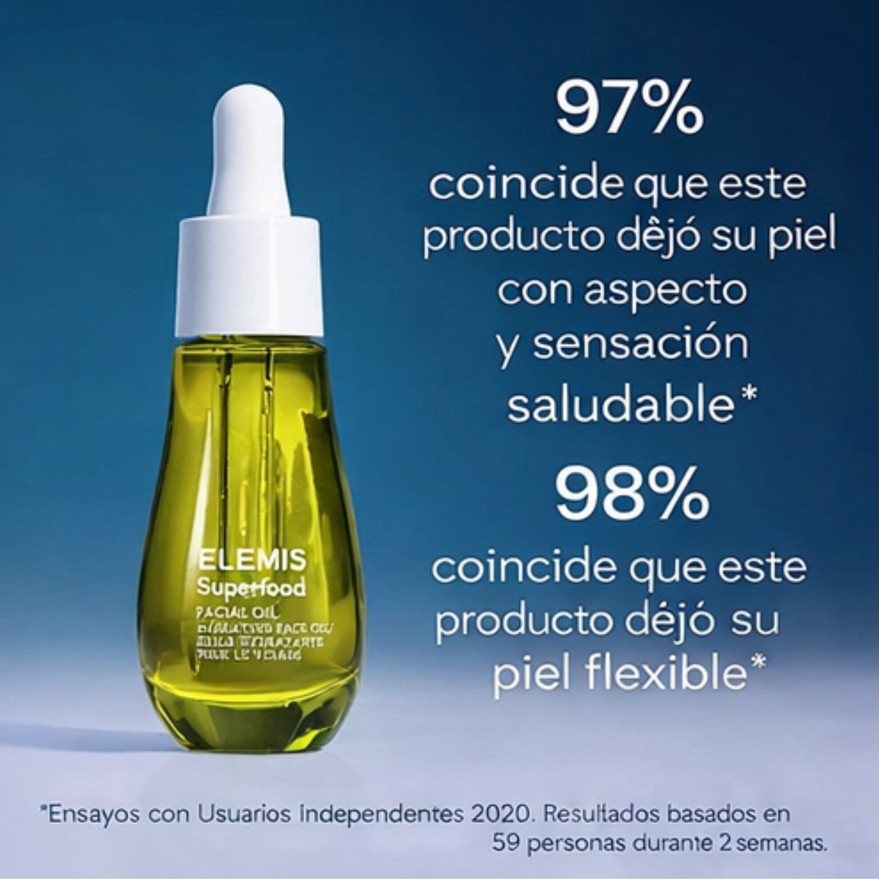 Use Elemis Superfood Facial Oil todas las mañanas y noches, después de su rutina de limpieza y antes de hidratar.