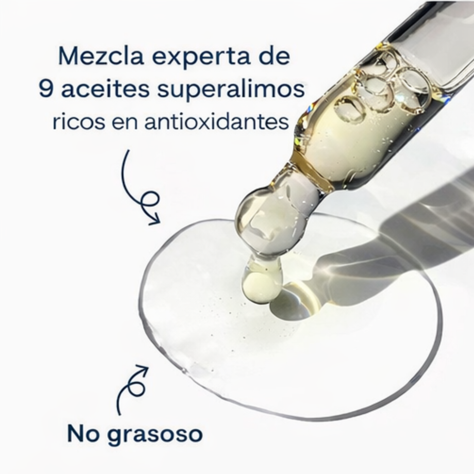 Reembuerza tu rutina de cuidado de la piel con una mezcla experta de 9 aceites de superalimentos ricos en antioxidantes, conocidos por nutrir profundamente y promover un brillo de aspecto saludable.
