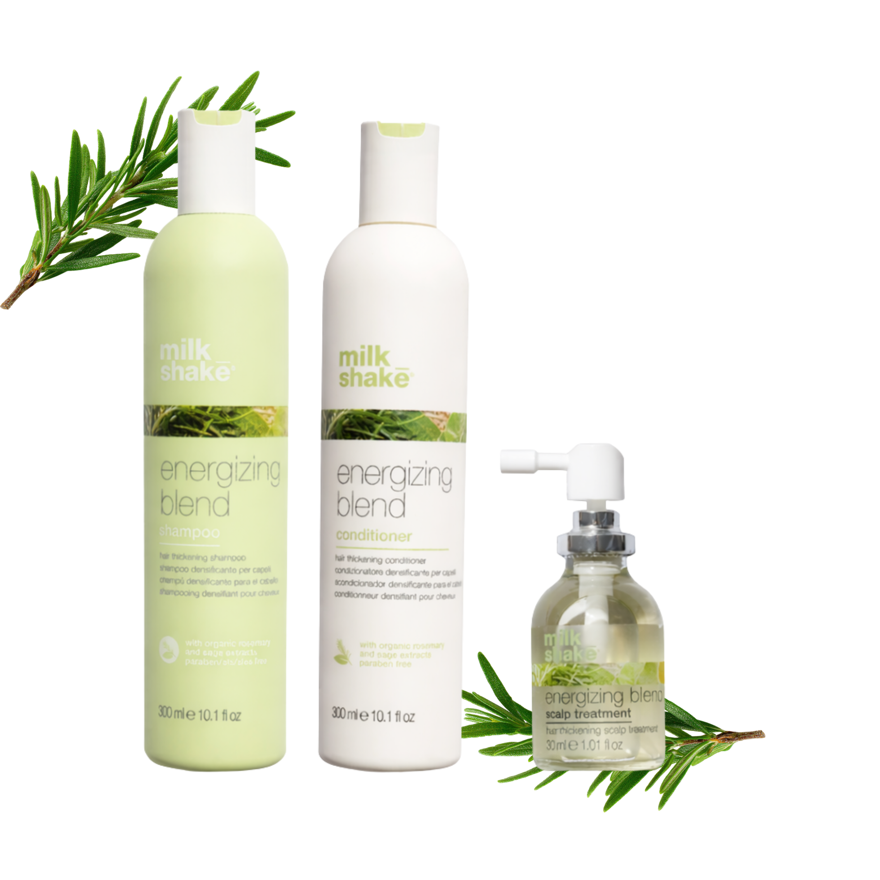 • 💧 Energizing Blend Conditioner (300 ml): Hidrata sin apelmazar y fortalece el cabello fino o debilitado.